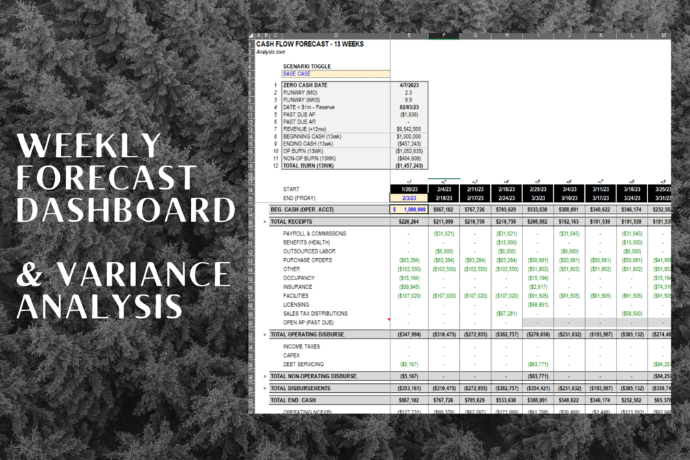 While there are many software packages on the market to help with cash flow forecasting, I find that Excel can be used effectively to learn the basics of modeling, tell stories and convey complex ideas, and highlight cash flow risks & opportunities to management teams.