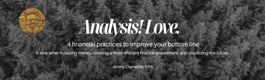 "Analysis! Love. is a brief for accountants, analysts, and founders alike. It is a resource to help strategic business leaders understand changes happening in the world of corporate finance, and learn a few common practices I use with clients to help them save money, be more efficient, and gain visibility into the future.